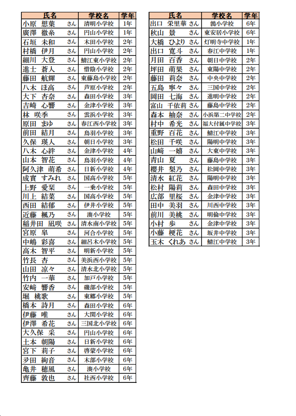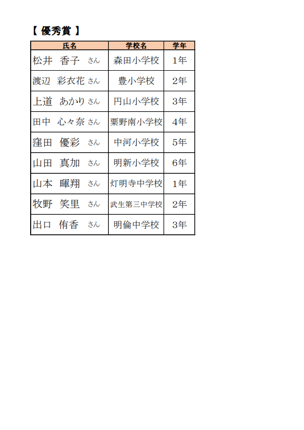 第10回 書道コンクール入賞者発表