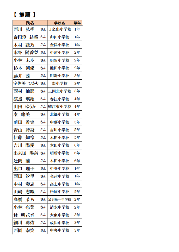 表彰式対象者