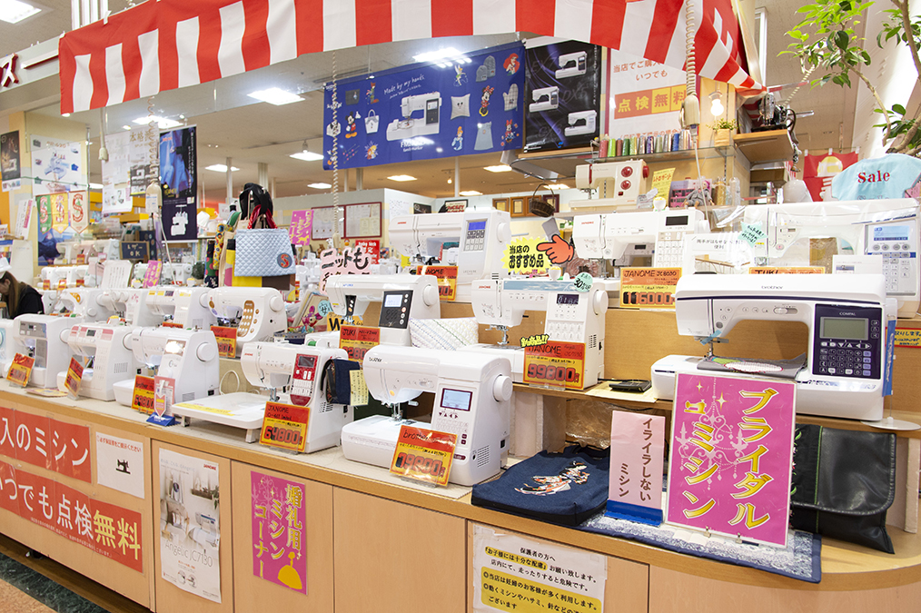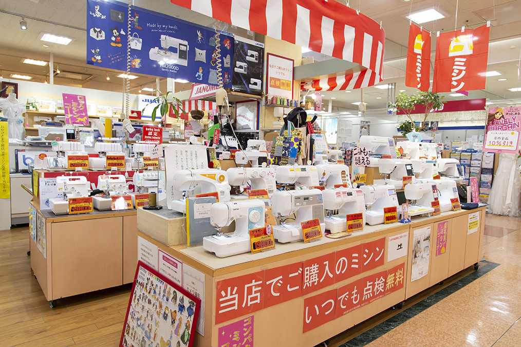 話題の西日本最大級家庭用ミシン専門店! 主要メーカーのミシン・部品を好評販売中。 充実の手芸コーナーは、リネンやコットンが大人気。 新商品も続々入荷中♪