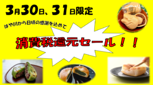 はや川初の消費税還元セールを実施いたします!